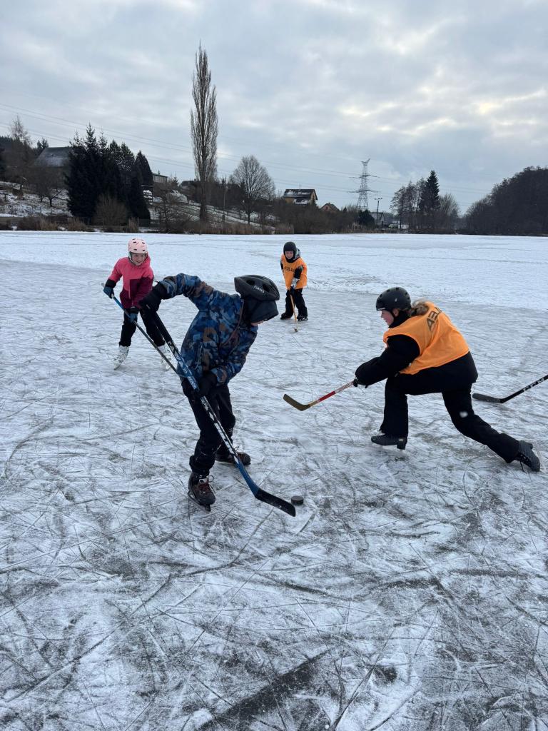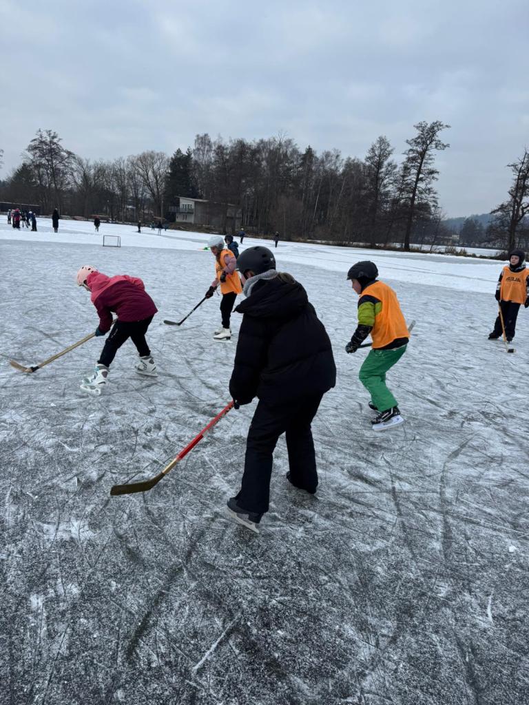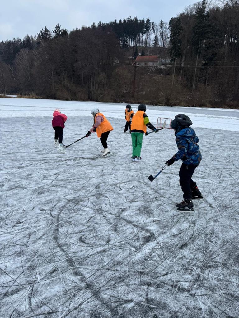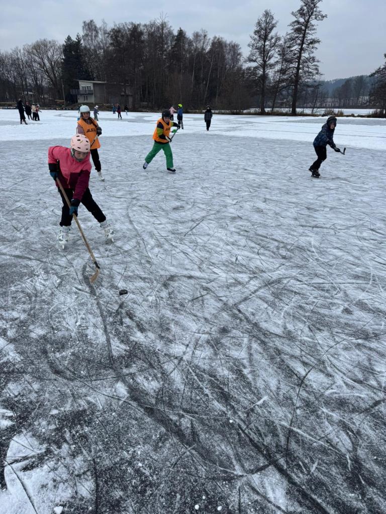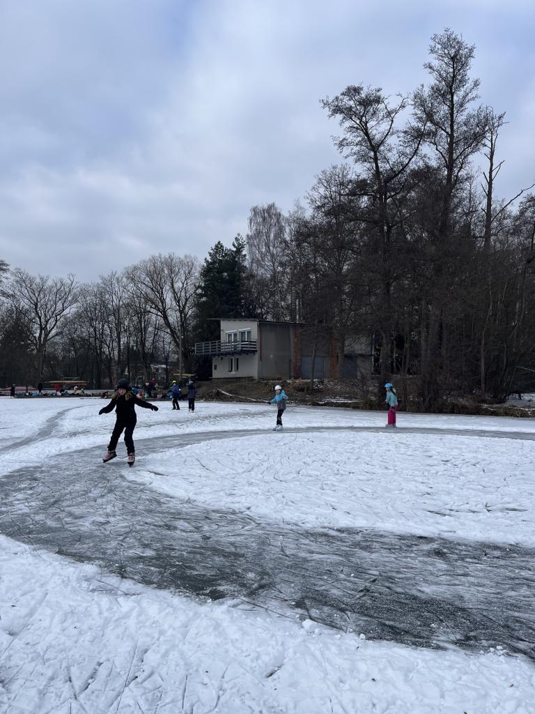 Díky mrazivým teplotám krásně zamrzly, hlavně ten druhý, a proto jsme po zjištění všech bezpečnostních podmínek vyrazili na brusle. Někteří očekávali odvoz autobusem, ale to měli smůlu. Šli jsme „procházkou“. Bruslení bylo nádherné. Plocha rybníka byla již na některých místech připravena pro hokej či bruslení nebo byly vyznačeny cesty pro „rychlobruslaře“. Počasí nám přálo a my jsme si to náramně užili.