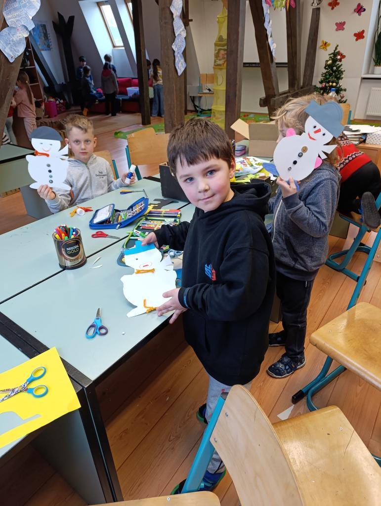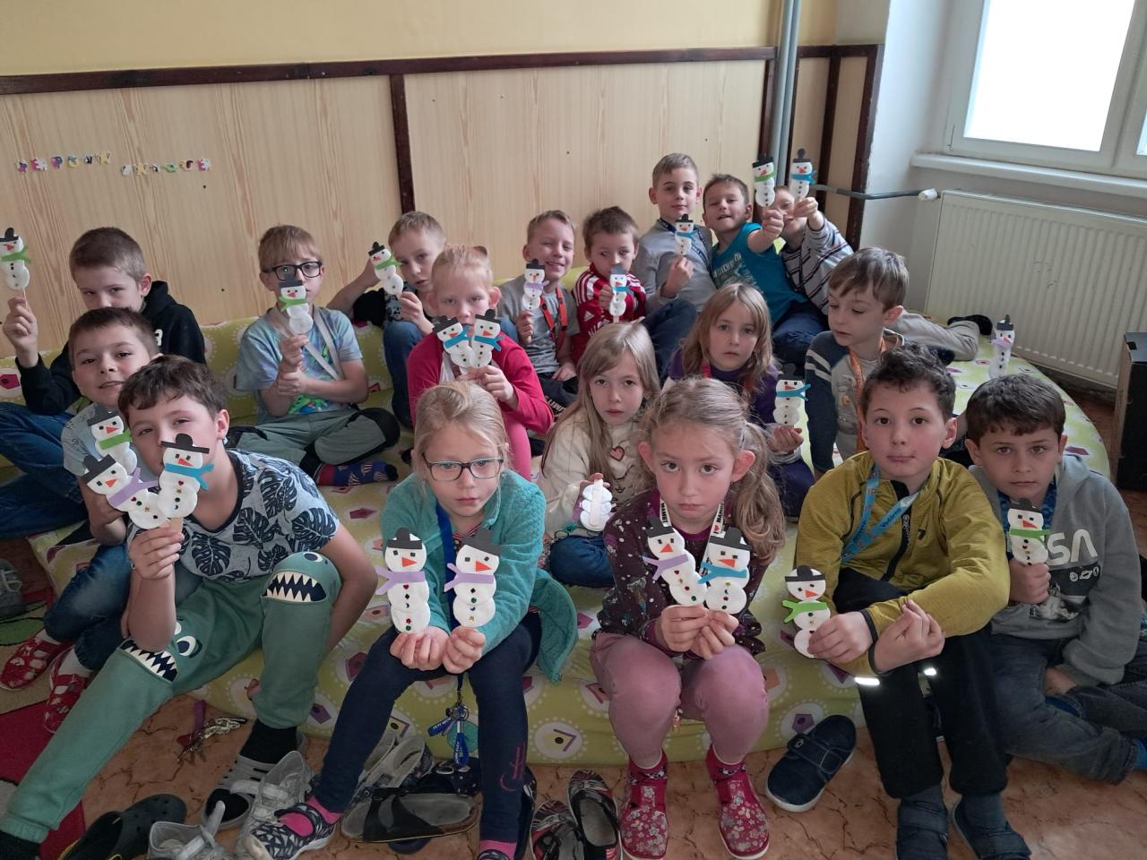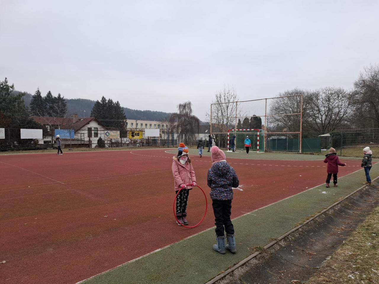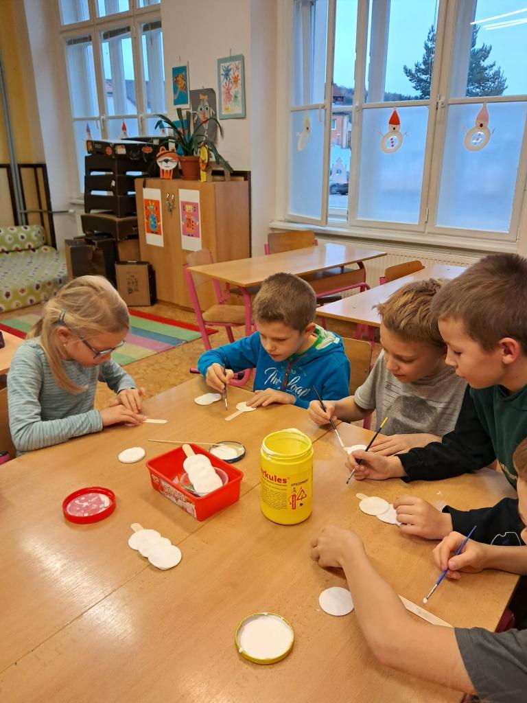 Některá oddělení uspořádala turnaj v deskových hrách a turnaj v piškvorkách. Děti vytvářely a malovaly zimní motivy a zimní sporty. V celoroční hře „Cesta kolem světa“ jsme si povídali o historii a místní kultuře v Řecku. Některé děti si i pamatovaly, který z mnoha ostrovů kolem Řecka, navštívily s rodiči. Když trochu přálo počasí, děti se šly do sokolovny na hřiště trochu otužit. Stále připomínáme dětem základní hygienické návyky, slušné chování v družině, ke kamarádům a používání kouzelných slovíček.