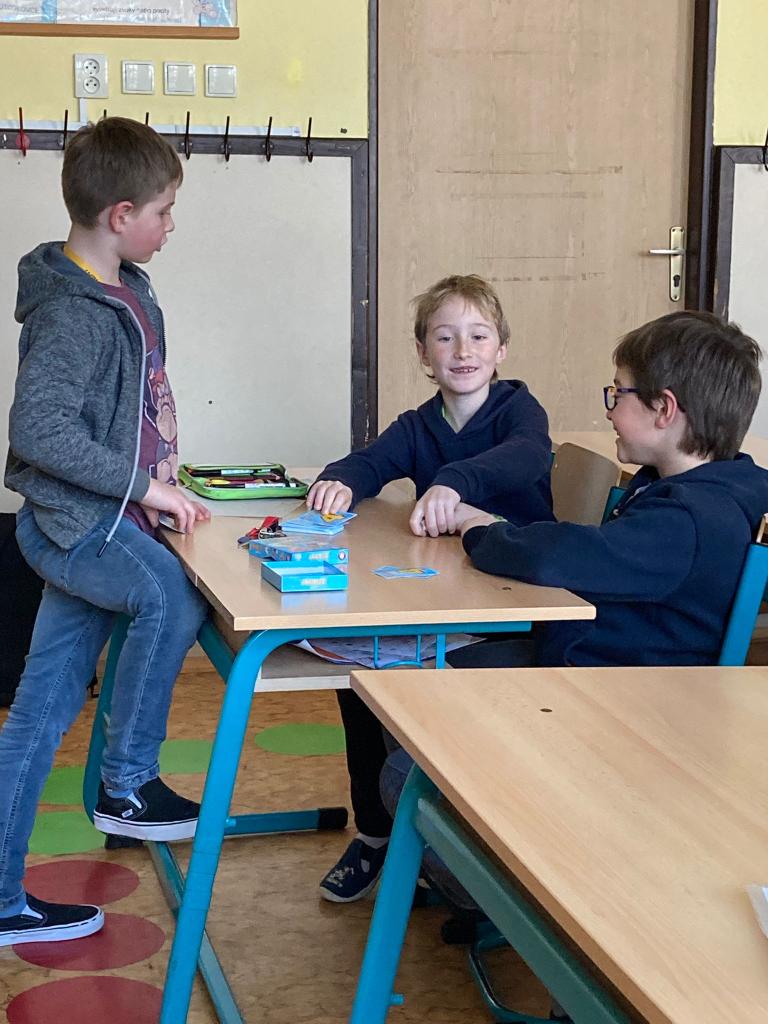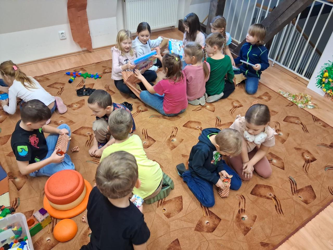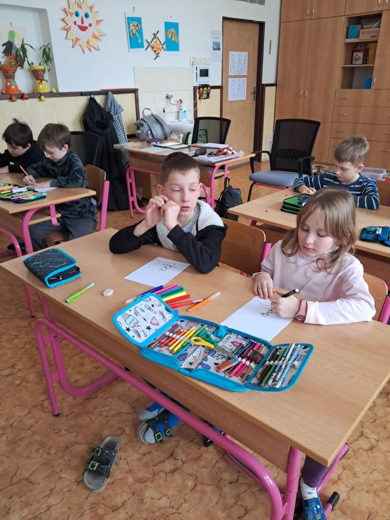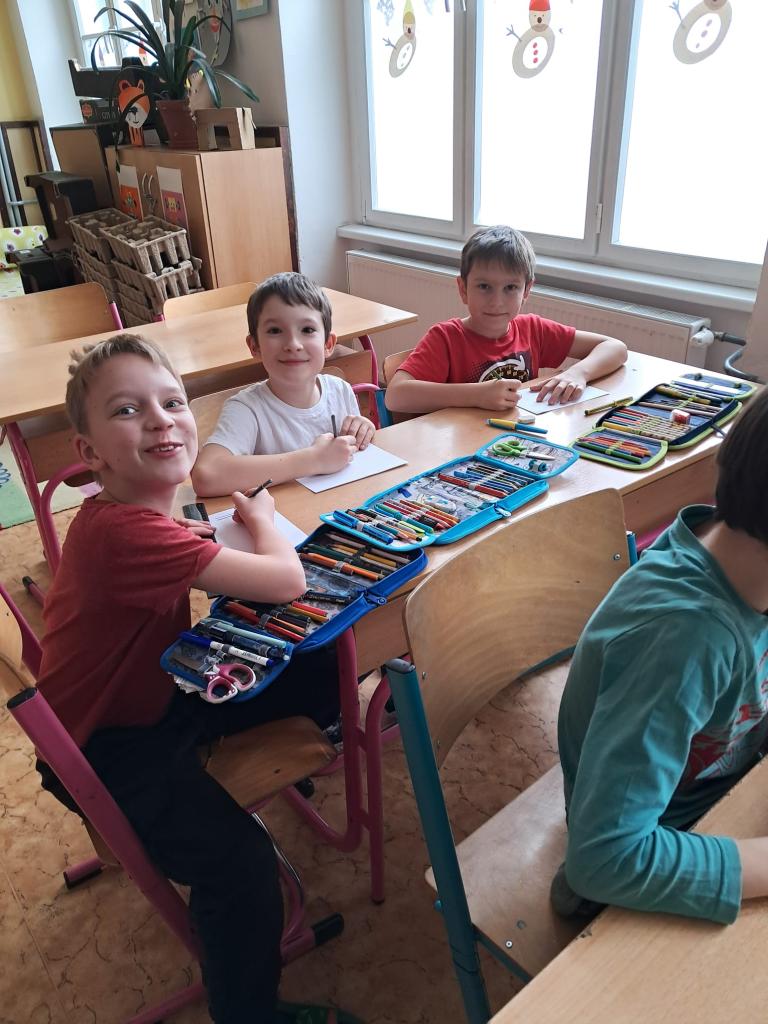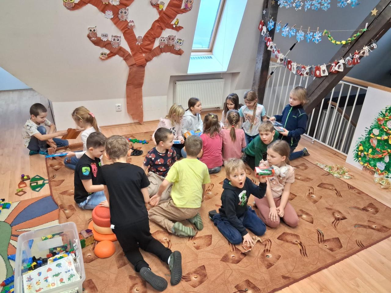 Některá oddělení uspořádala turnaj v deskových hrách a turnaj v piškvorkách. Děti vytvářely a malovaly zimní motivy a zimní sporty. V celoroční hře „Cesta kolem světa“ jsme si povídali o historii a místní kultuře v Řecku. Některé děti si i pamatovaly, který z mnoha ostrovů kolem Řecka, navštívily s rodiči. Když trochu přálo počasí, děti se šly do sokolovny na hřiště trochu otužit. Stále připomínáme dětem základní hygienické návyky, slušné chování v družině, ke kamarádům a používání kouzelných slovíček.
