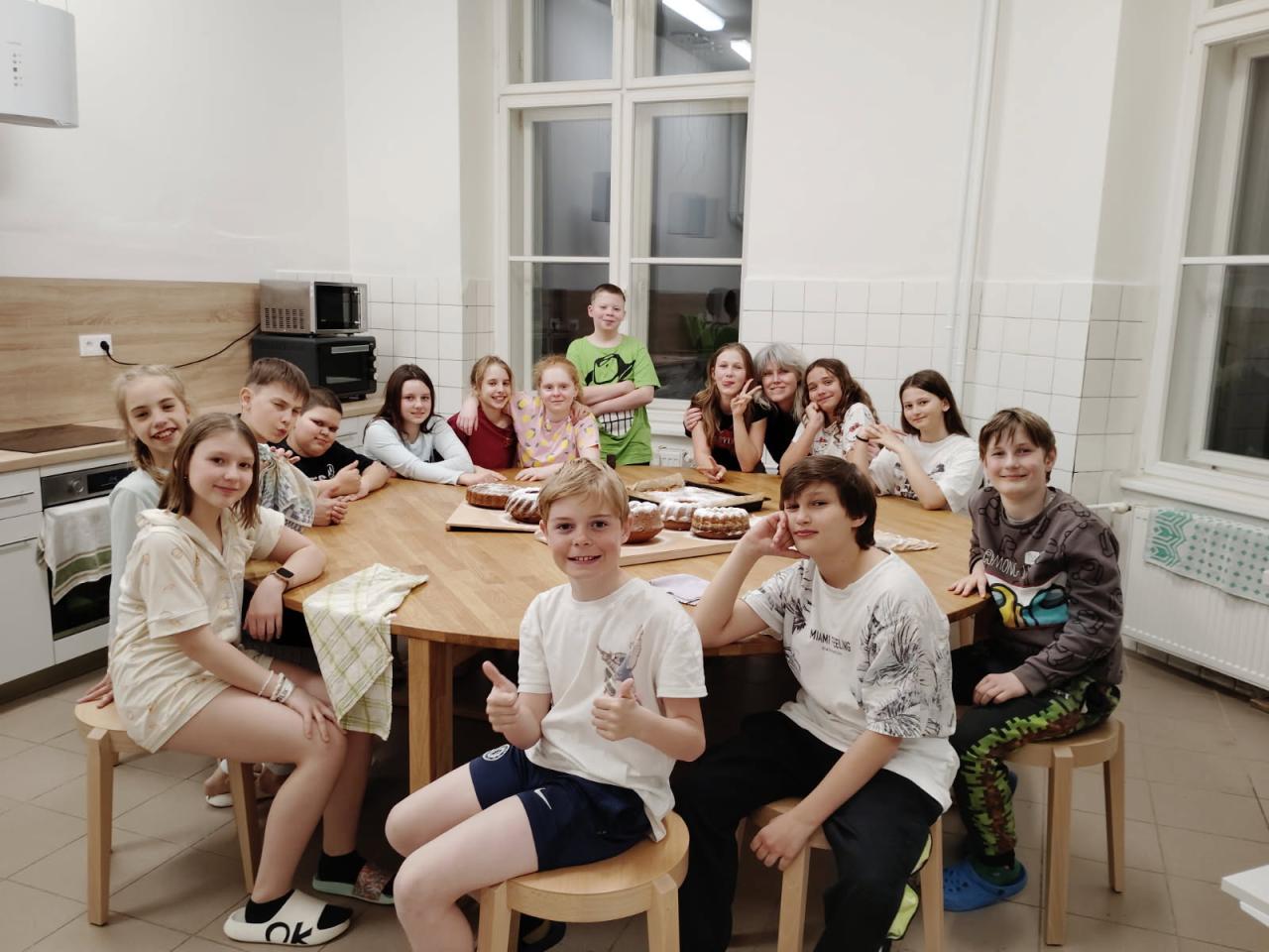 Ve středu 1. 4. 2026, a nebyl to apríl…, jsme se s věcmi nastěhovali do školy. K večeru jsme zabrali cvičnou kuchyňku a míchali, strouhali, vážili – no, prostě pekli naše bábovky. Vůně se šířila celou chodbou.