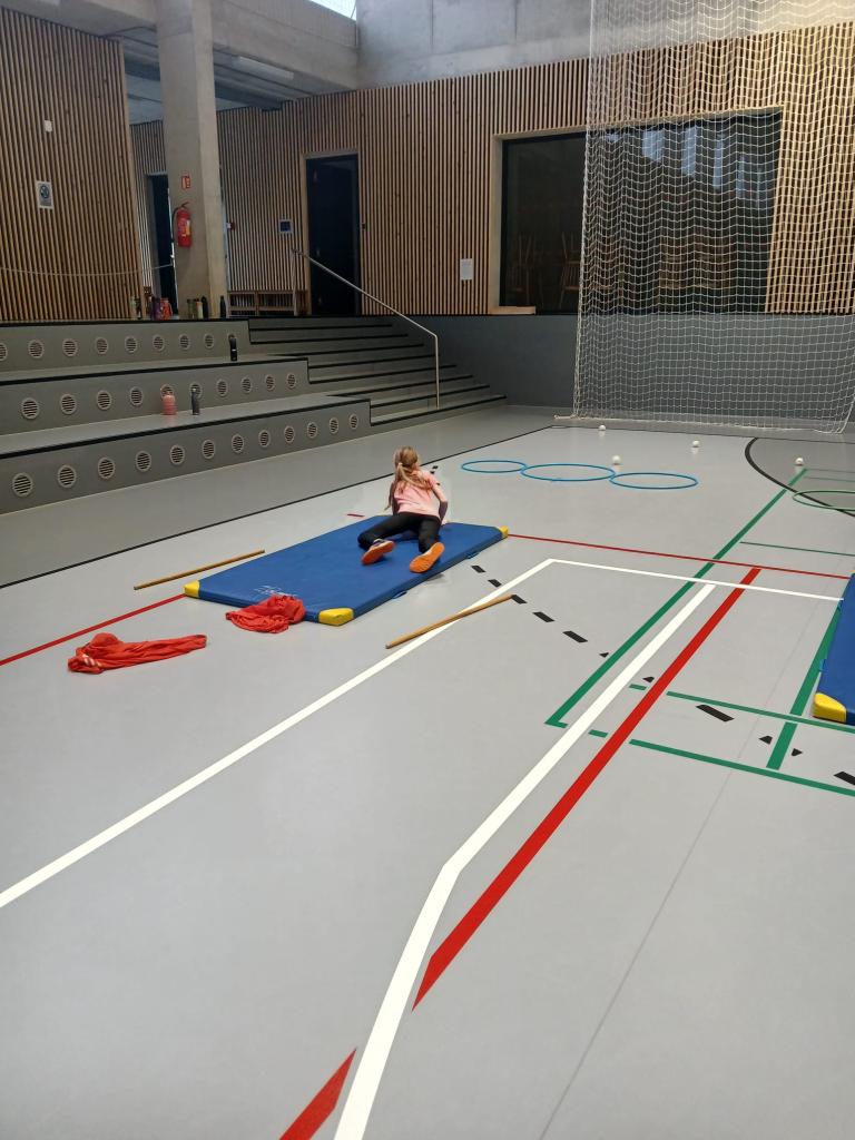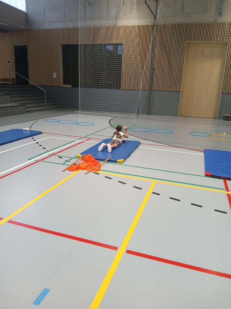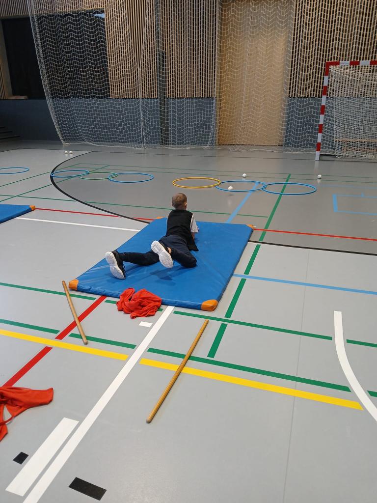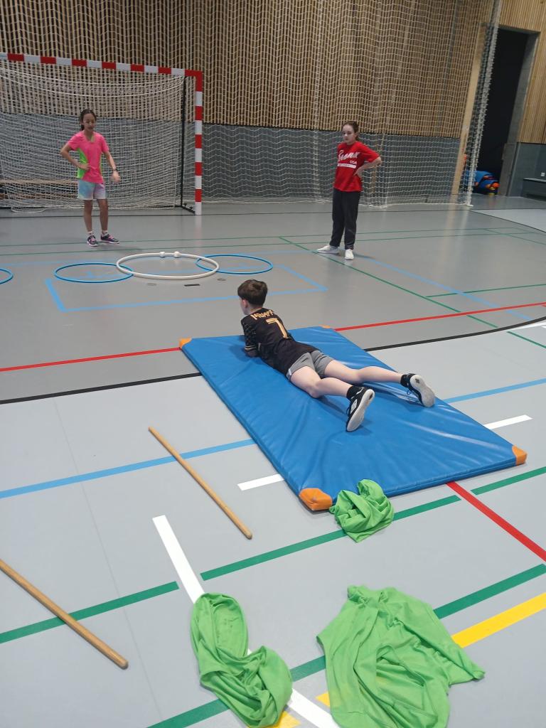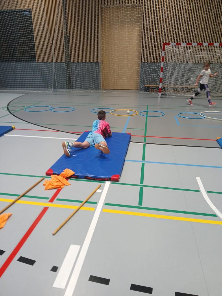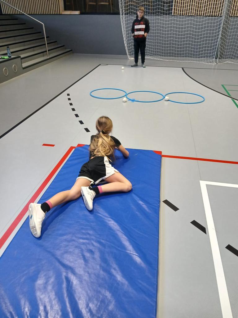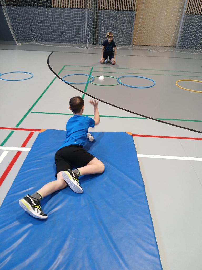 Po absolvování běžecké části následovala střelba. Děti v leže na žíněnce trefovaly papírovými koulemi připravené obruče. Každý nepřesný hod znamenal trestné kolečko navíc, takže bylo potřeba nejen rychle běžet, ale také se uklidnit a přesně zamířit.