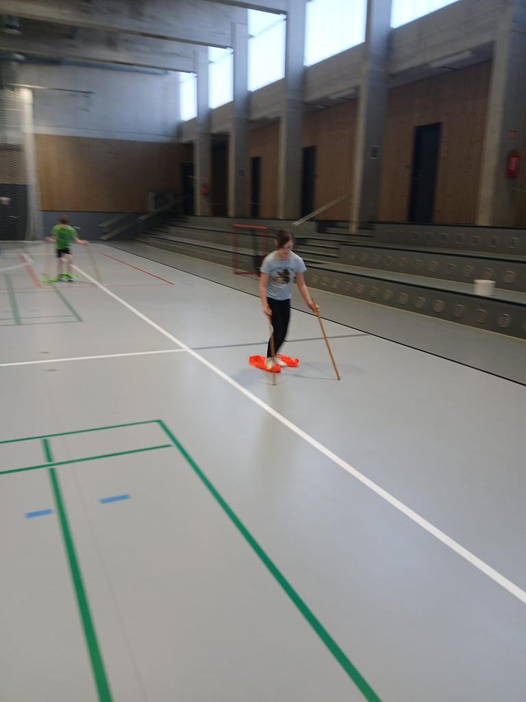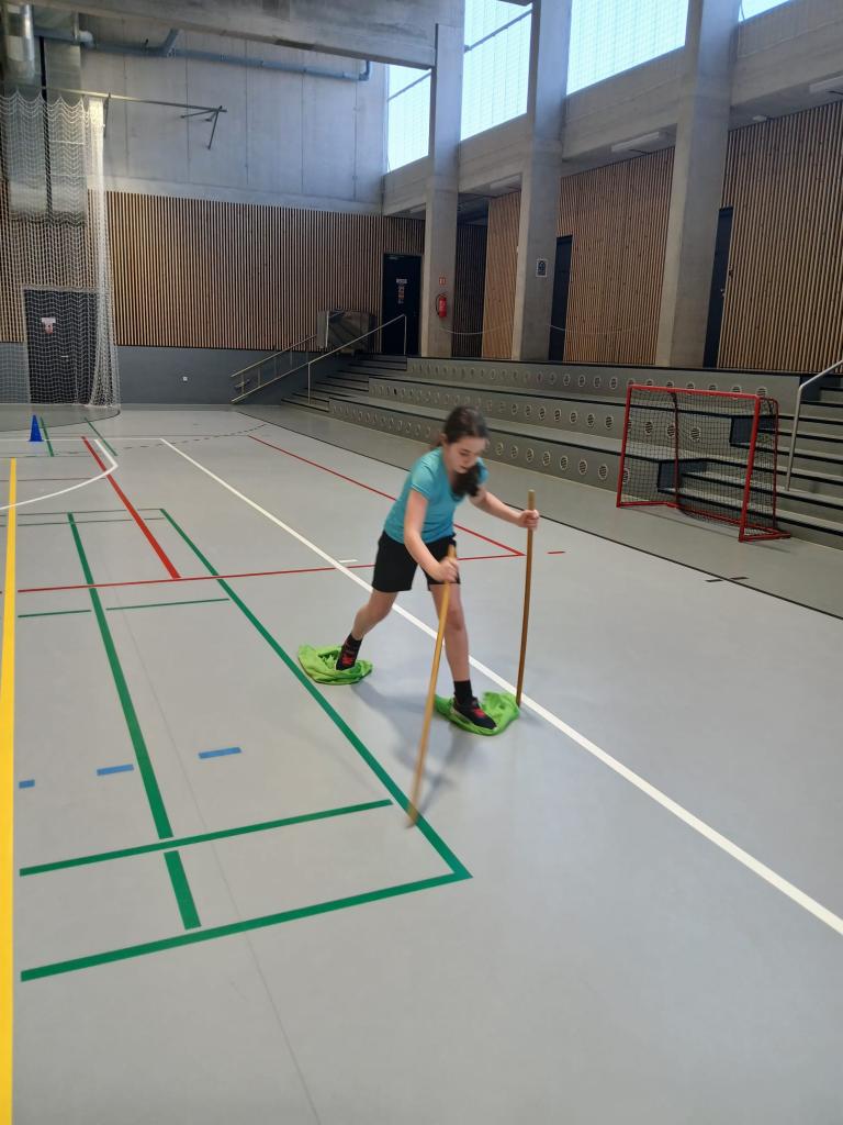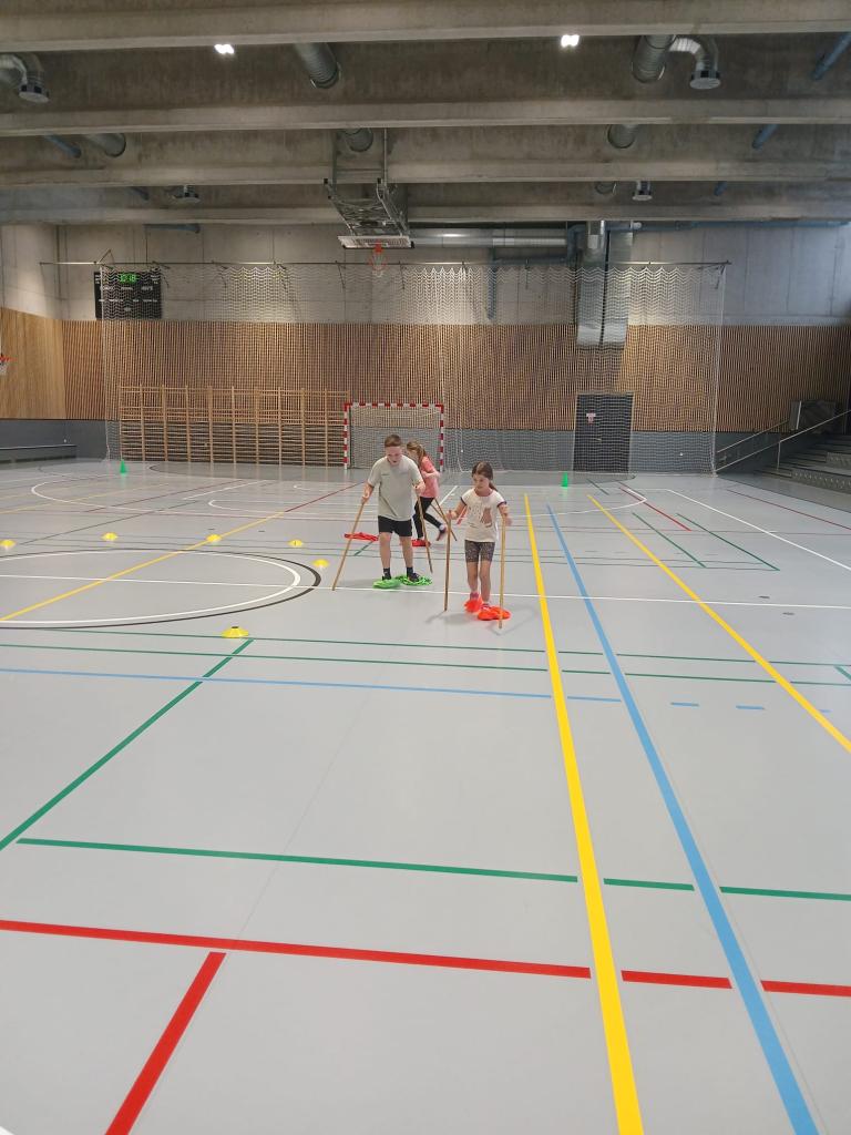 Po celé hale byl postavený závodní okruh, který prověřil rychlost, obratnost, vytrvalost a spolupráci jednotlivých družstev. Místo lyží se děti pohybovaly originálním způsobem – „klouzaly“ po rozlišovacích dresech, což vyžadovalo dobrou koordinaci pohybu.