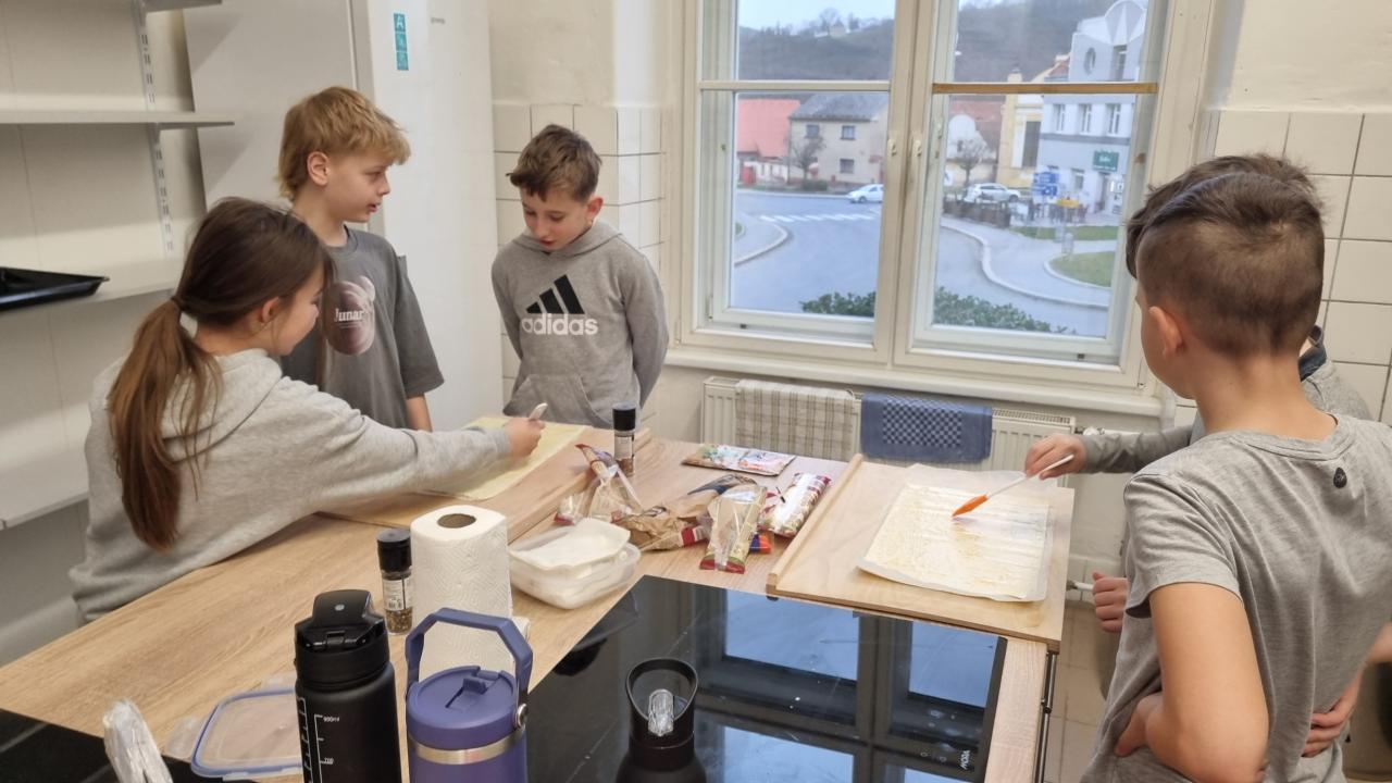 Předvelikonoční čas si žáci ze 4. B zpříjemnili přípravou své vybrané pomazánky a upečením oblíbených pizza šneků.